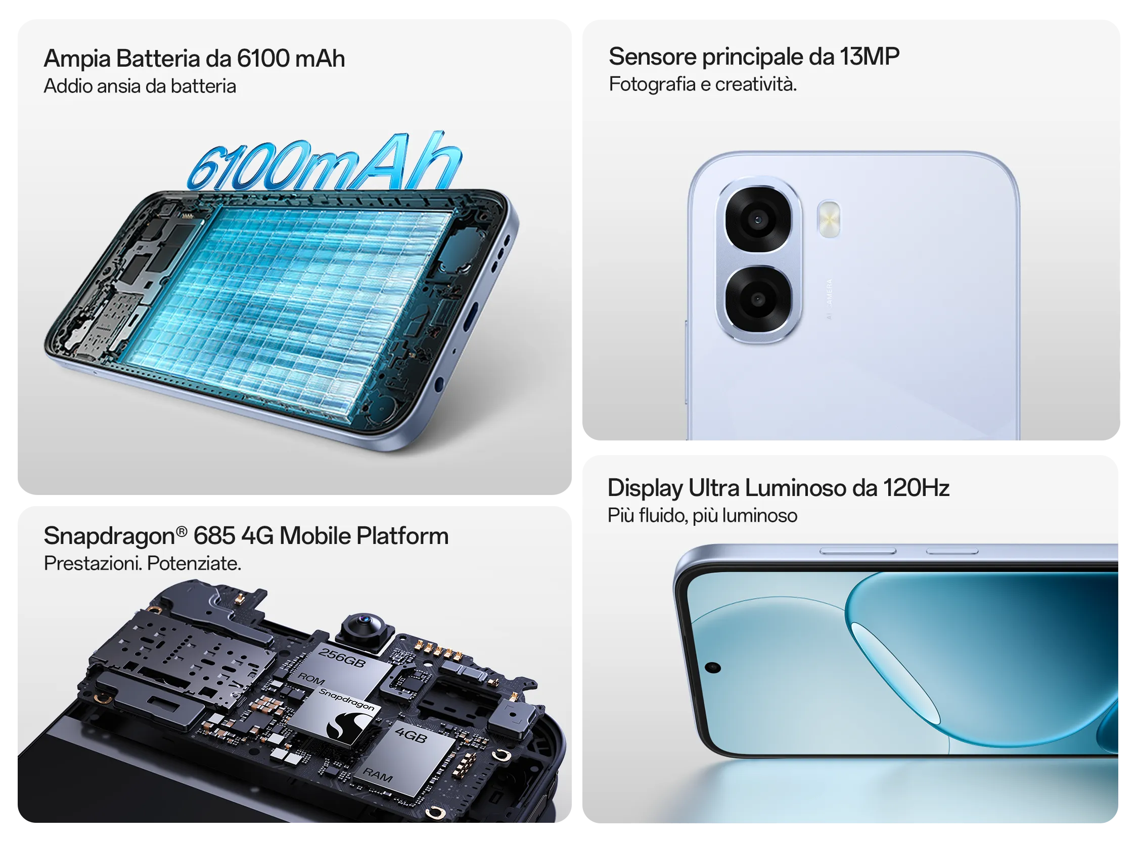 Grazie al chipset Qualcomm Snapdragon 685 4G a 6nm, questi smartphone sono concepiti per offrire un’operatività priva di rallentamenti in qualsiasi contesto. Il pannello a 120Hz eleva l'esperienza d'uso, rendendo ogni scorrimento e tocco immediato, proiettandoti nel futuro della navigazione. Il segreto delle prestazioni risiede nel SuperCool VC System: questa tecnologia dissipa il calore mantenendo il device fresco anche sotto stress, assicurando stabilità totale. Con una certificazione di fluidità garantita fino a 60 mesi (48 per A6x), avrai tra le mani un dispositivo che resterà veloce e reattivo come il primo giorno per ben 4 anni. OPPO A6X e OPPO A6k sono la scelta ideale per chi non tollera le attese e cerca una scorrevolezza assoluta in ogni istante della propria giornata.