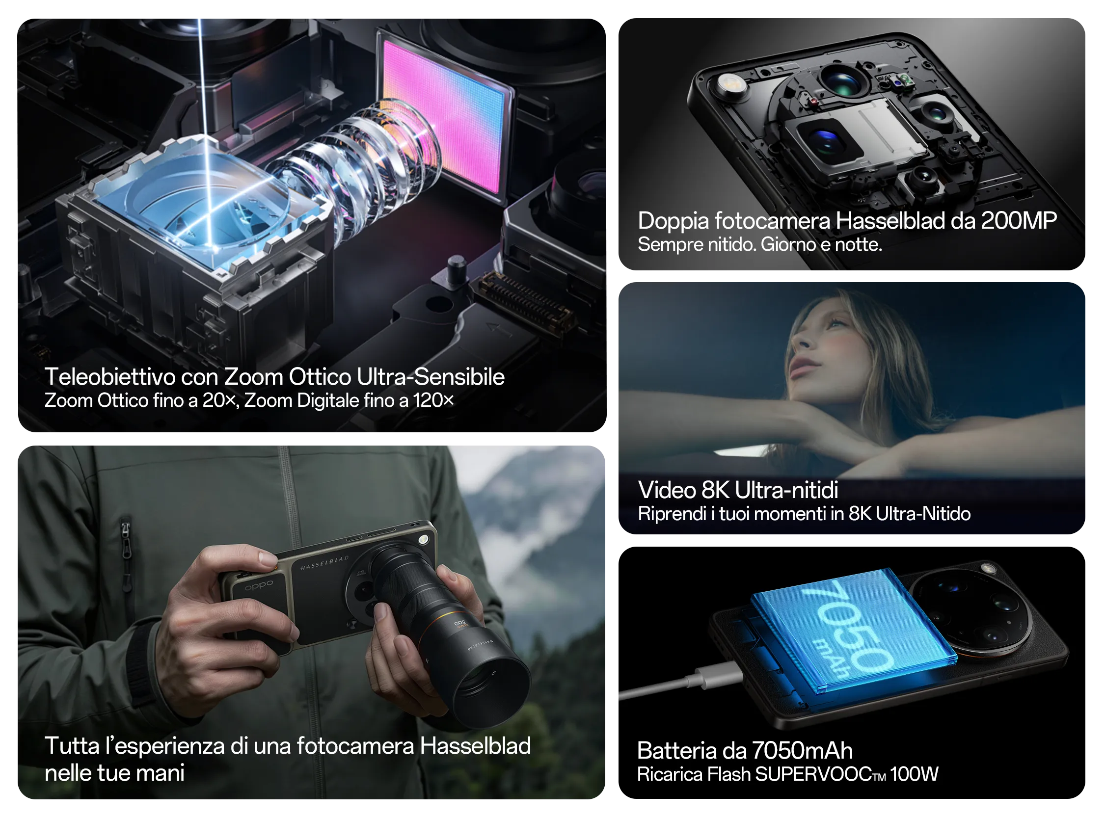 l Teleobiettivo Hasselblad 50MP di OPPO Find X9 Ultra è un primato assoluto nel settore: nessun altro smartphone ha mai abbinato zoom ottico 10x nativo e 50MP in un unico sensore. Quest’ultimo, grazie all’apertura f/3.5 ed ai filtri in vetro di grado aerospaziale, garantisce una nitidezza cristallina anche a distanze impossibili. La struttura a Quintuplo Prisma di riflessione, brevettata da OPPO con oltre 160 fasi di lavorazione di precisione, riduce l'ingombro del 30% rispetto ad un periscopio tradizionale, liberando spazio per la batteria record. Il risultato? Pura magia ottica in un dispositivo tascabile.