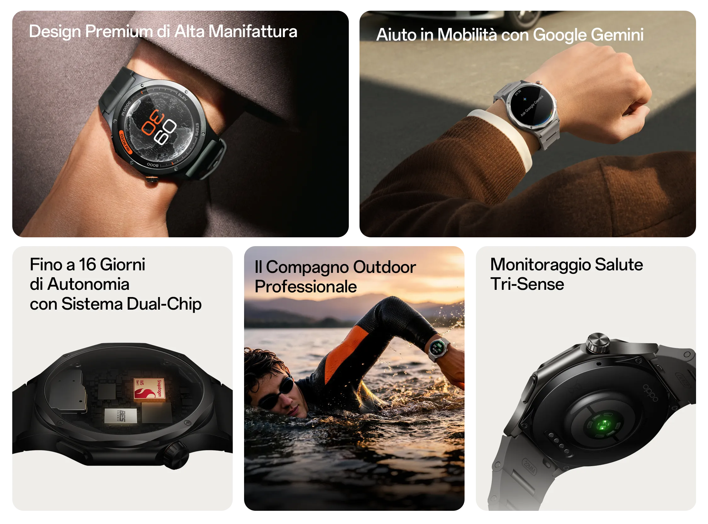Con OPPO Watch X3, l'intelligenza artificiale è finalmente a portata di mano: basta alzare il polso per svegliare Gemini, l'assistente AI di Google integrato all’interno di questo nuovo smartwatch. Puoi chiedergli di ricordare informazioni importanti, rispondere a domande, inviare messaggi, controllare dispositivi smart home o avviare la navigazione con Google Maps, tutto senza mai estrarre lo smartphone dalla tasca. OPPO Watch X3 diventa così molto più di un orologio connesso: è un assistente personale intelligente, capace di adattarsi alle tue abitudini e di semplificare ogni momento della giornata, dal mattino in ufficio fino all'ultimo chilometro di allenamento.
